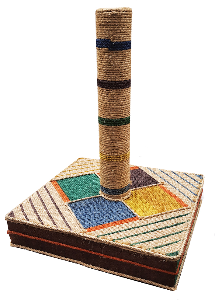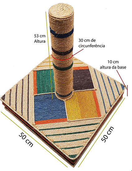 Confeccionado em sisal Apoebe 5mm, tingido manualmente com pigmentos livres de toxidade pensando na saúde de seu gato;